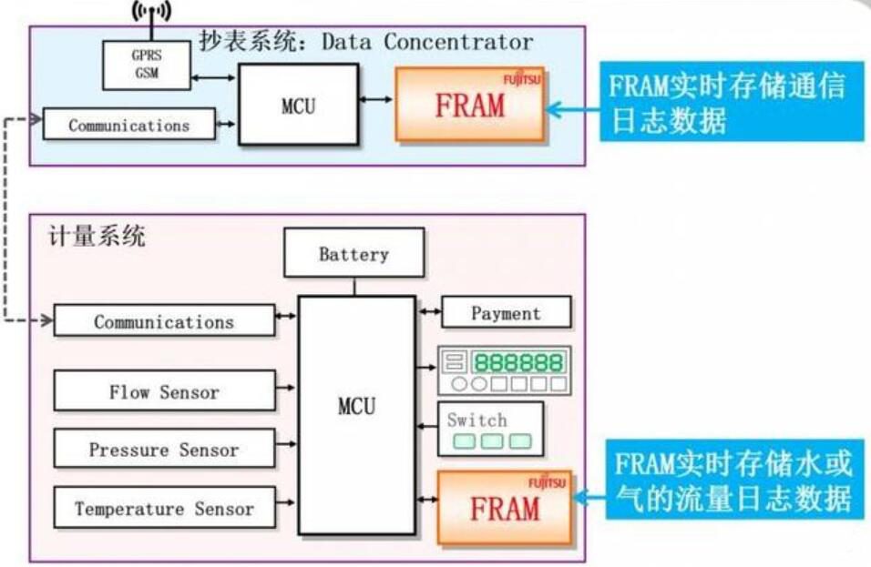 圖1:富士通FRAM在智能水、氣表計(jì)中的應(yīng)用
