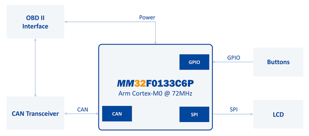 靈動微MM32F0133C6P微控制器的OBD診斷儀系統參考方案