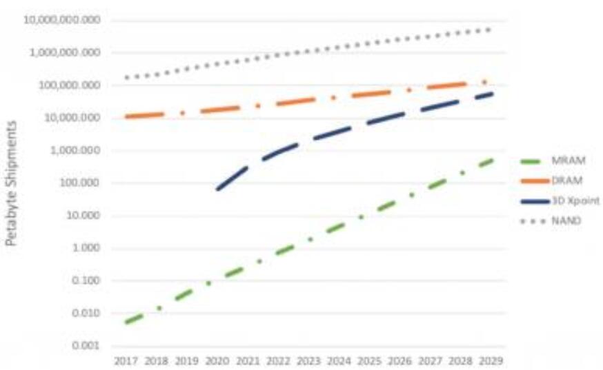 MRAM和STT-MRAM的收入將增長170倍,達到近40億美元的收入。下一代內存技術的增長將主要由取代效率較低的內存技術(例如NOR閃存和SRAM)推動。