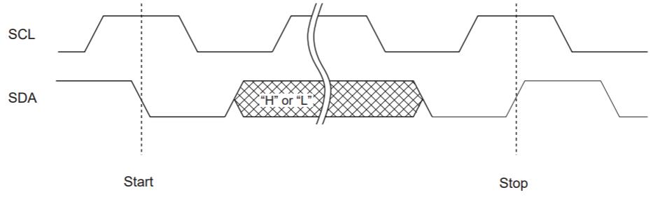 I2C總線僅通過兩條線提供通信,因此,當(dāng)SCL為“L”電平時(shí),SDA輸入應(yīng)改變。但是,在啟動(dòng)和停止通信序列時(shí),SDA允許更改,而SCL為“H”電平。