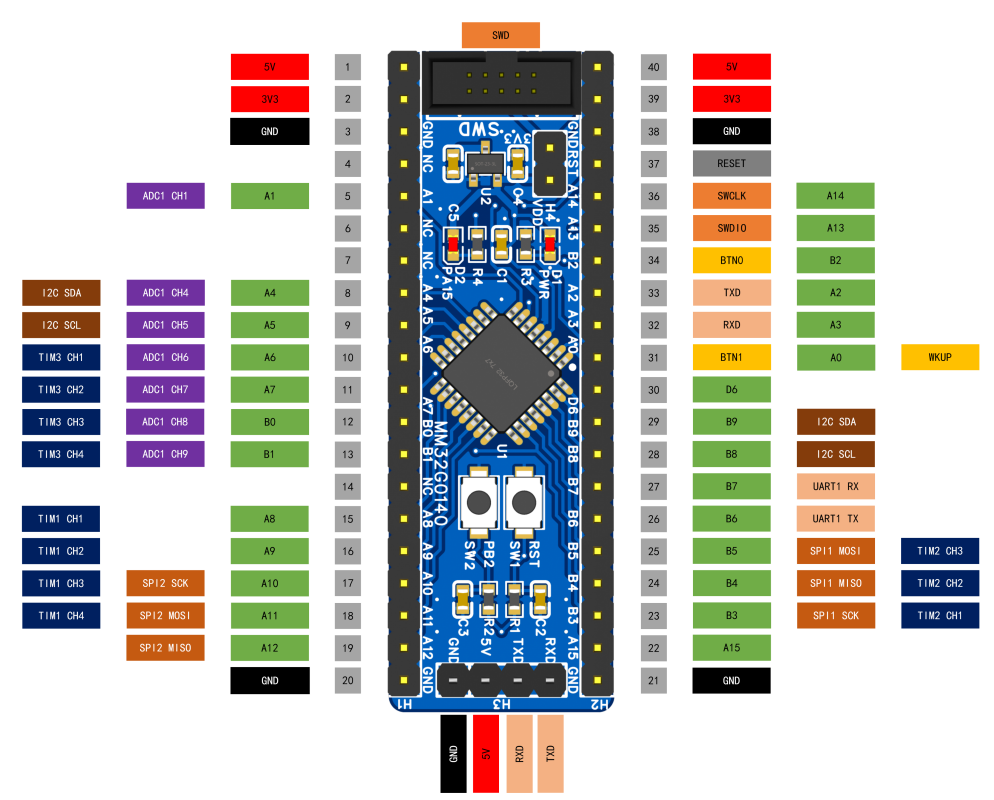 MM32G0141C1TV MM32G0140 Cortex-M0 TSSOP20 64KB 8KB 72MHz 17 12