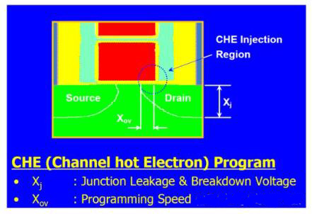根據Nor Flash的原理,它是使用CHE來編碼,然后使用FN Tunning 來擦除,而電荷注入機制對這兩個因素的印象很大,下面分別看一下其考量和解決辦法: